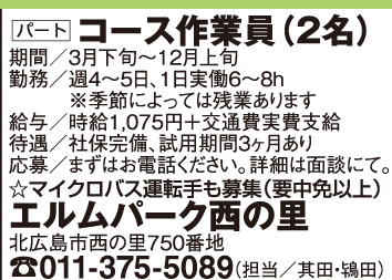 2月27日号掲載 エルムパーク西の里 ホーム 雇用形態で探す(パート・アルバイト) 2月27日号掲載 エルムパーク西の里 職種 コース作業員パート 普通自動車免許 経験者・有資格者優遇 車通勤可 交通費支給 公開日:2026年2月26日 掲載期間:2026年3月5日まで 労働者募集に関する情報提供日時:2026年2月20日時点 キープ この求人への応募はこちら ご応募またはお問合せ先の表示 0113755089 ※お電話の際は「まんまるジョブを見て」とお伝え下さい。