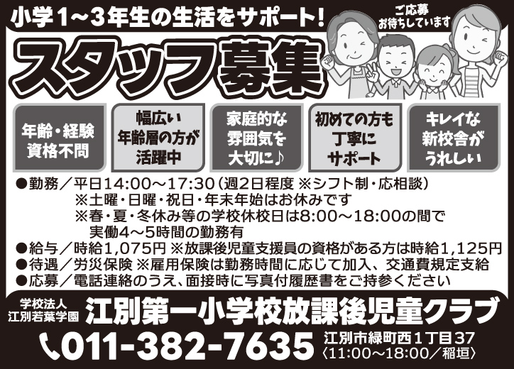 3月6日号掲載 江別第一小学校放課後児童クラブ ホーム 3月6日号掲載 江別第一小学校放課後児童クラブ 職種 児童放課後支援員パートアルバイト 交通費支給 公開日:2026年3月5日 掲載期間:2026年3月12日まで 労働者募集に関する情報提供日時:2026年2月27日時点 キープ この求人への応募はこちら ご応募またはお問合せ先の表示 0113827635 ※お電話の際は「まんまるジョブを見て」とお伝え下さい。